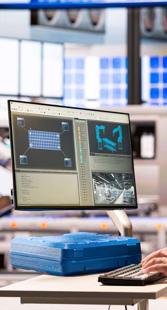 Elegimos la maquinaria automatizada óptima según los requerimientos, desarrollamos especificaciones técnicas, gestionamos la compra de equipos y adaptamos la infraestructura existente.
